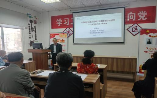 本网讯 为推动党的二十大精神进社区,11月9日下午,乐动(中国)一站式服务平台马克思主义学部教授、黄石市委宣讲团成员周青山同志到湖滨社区宣讲党的二十大精神---全面建设社会主义现代化国家的行动纲领。