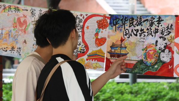 此次展览,共展出60余件以中华民族文化为内容的作品,这些作品主题昂扬、格调高雅、风格多样、各具特色,既有反映各民族风土人情的画作,也有展现民族团结进步的感人故事,同学们用自己的笔墨,把“民族团结”编成文、绘成画,让中华民族共同体意识,在春风化雨、润物无声中入脑入心。展览吸引了众多师生驻足观赏。