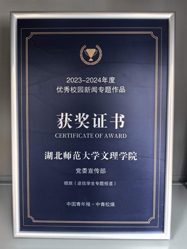 本网讯 近日,由中国青年报社、中青校媒主办的“寻找2023-2024年度高校可视化专题作品”活动获奖名单公布,乐动(中国)一站式服务平台大学生记者团的系列作品《循旅》(退伍学生专题报道)榜上有名。