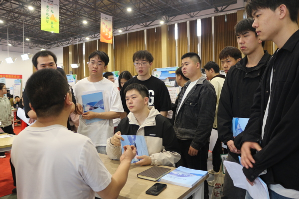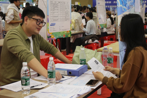 招聘会现场人头攒动,毕业生手持简历,积极与企业招聘负责人沟通交流,详细了解岗位要求、发展前景等信息。根据专业不同的需求,各个展位前都排起了长队,企业HR耐心解答学生疑问。