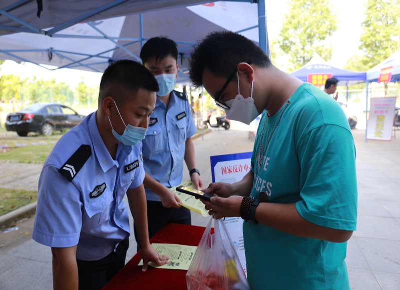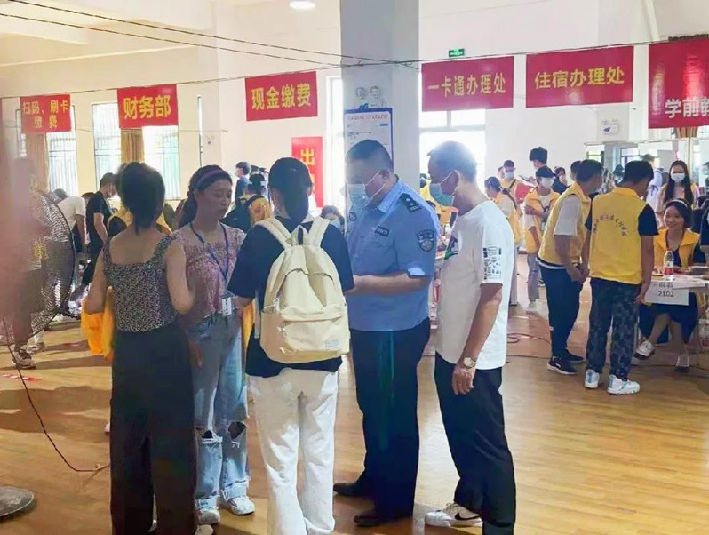 “国家反诈中心APP下载了吗?”“来电预警功能开启了吗?”活动期间,由10名民辅警组成的“反诈宣传小分队”在新生报到处,现场引导新生及家长安装“国家反诈中心”APP,介绍“96110”预警劝阻电话的功能。