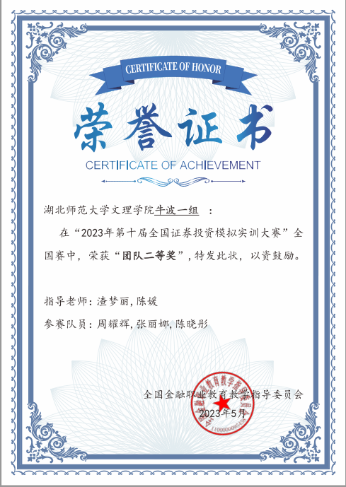 由全国金融职业教育教学指导委员会组织的2023年第十届全国证券投资模拟实训大赛在5月12日顺利结束。此次大赛是以证券业为背景,基于证券从业者所应具备的行业知识、基本业务技能及实操技能等设计的综合实训大赛。共有本科组296所院校的13711支队伍(每队三人),共41133人参赛,职教组226所院校的6500支队伍、19500人参赛。
