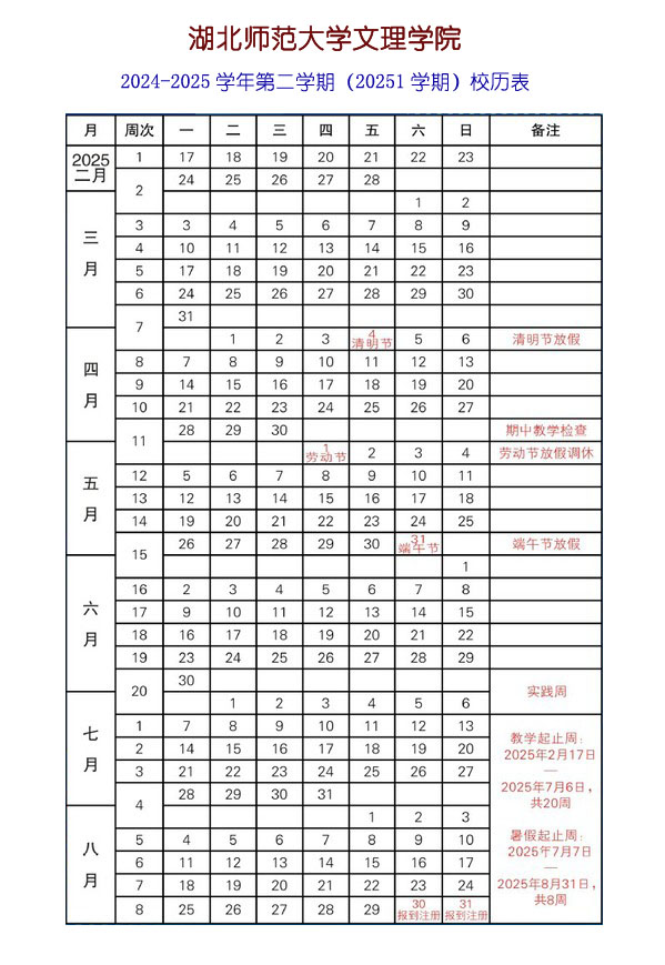 乐动平台2024-2025学年第二学期校历表