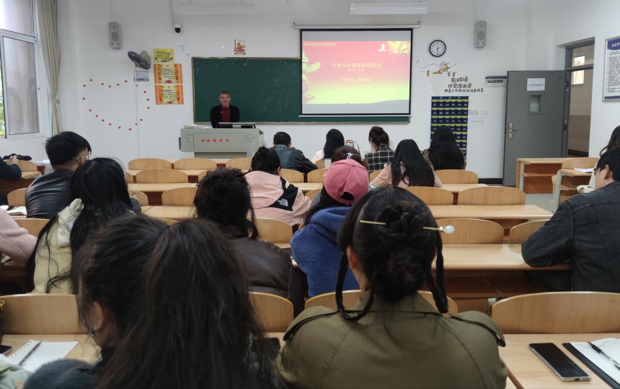 为切实提高“形势与政策”课教学质量,确保本学期教学工作的顺利开展,11月24日下午,马克思主义学部在1A206召开本学期“形势与政策”课教师培训会。此次会议由马克思主义学部主任周青山主持,学校全体“形势与政策”课教师参会。