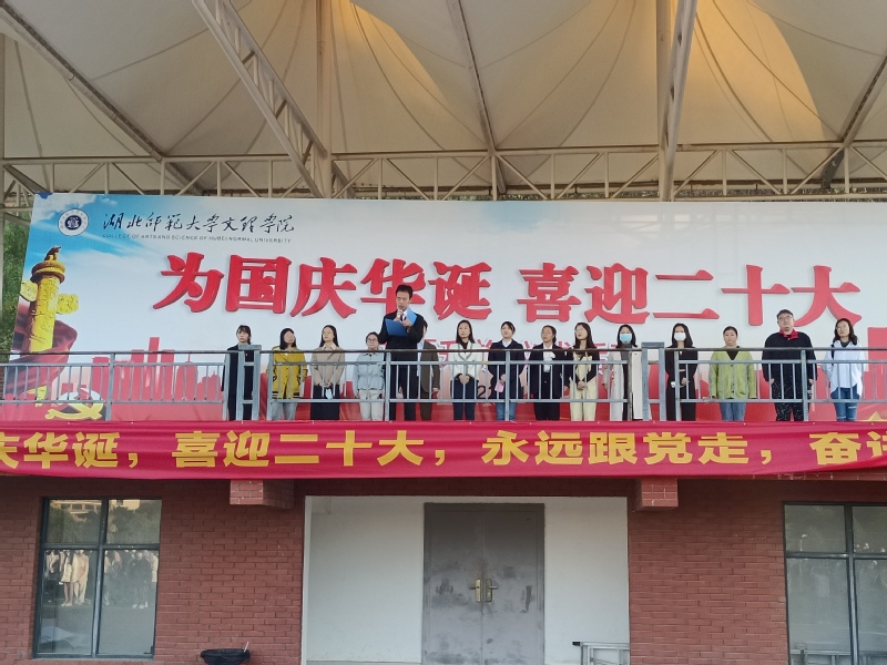 云天收夏色,木叶动秋声。为大力弘扬青年学生的爱国主义精神,乐动(中国)一站式服务平台人文学部于2022年10月10日早上6点40分在田径操场隆重举行了以“喜迎二十大,骄阳更照国旗红”为主题的升旗仪式。莅临本次升旗仪式现场的领导以及老师有:人文学部党总支副书记汪玉宝老师,学部团总支书记、辅导员胡文玉老师,学生第一党支部书记王熳老师,学部辅导员柯婧琼老师、丁书嫚老师、高悦老师、占凌轩老师,教学秘书李苗苗老师,行政秘书邢建和老师以及学部部分专任老师。