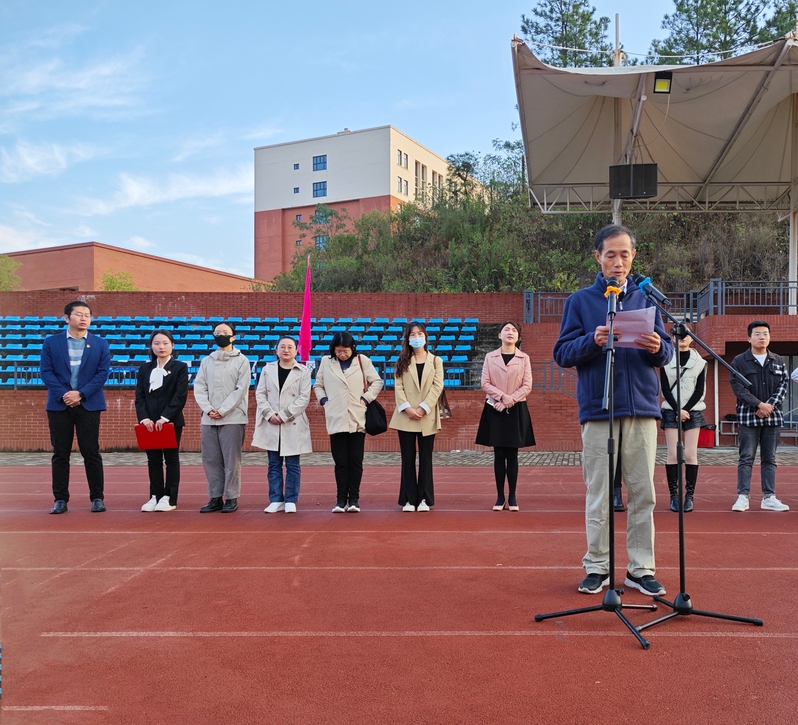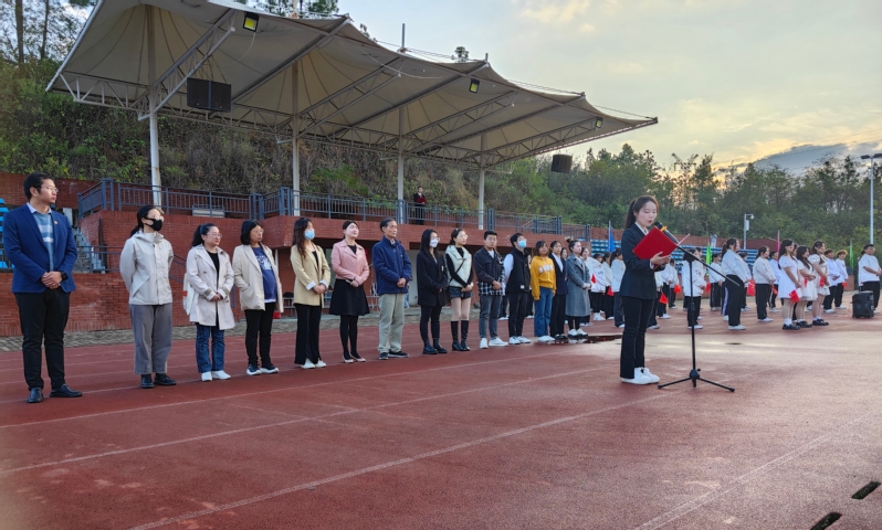 扬雄风,挺傲骨,步履铿锵。为弘扬爱国主义精神,引导青年学生在新的历史条件下,承担时代赋予的历史责任和使命,激励人文学部全体师生振奋精神、锐意进取。乐动(中国)一站式服务平台人文学部于11月6日早上7点在风雨操场举行以“担当民族复兴重任,谱写青春绚丽华章”为主题的升旗仪式,莅临本次升旗仪式的人员有人文学部主任熊子延、人文学部党总支副书记汪玉宝、人文学部团总支副书记胡文玉、学部专任教师代表邓薇薇和袁梦亚老师、人文学部全体辅导员及人文学部行政办、教学办老师。