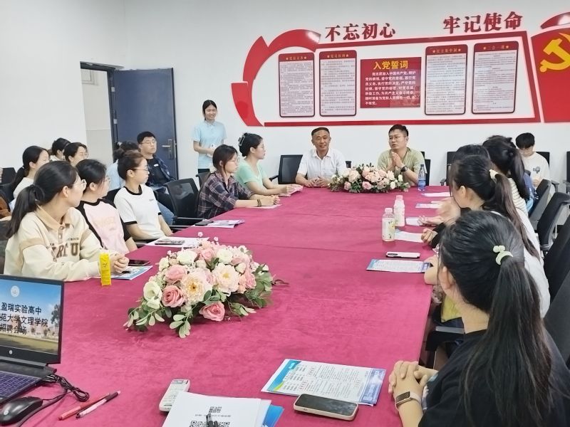 5月21日下午2:30-5:30,在3号实验楼508会议室,人文学部联合随州盈瑞实验高中组织了一场招聘宣讲会,盈瑞实验高中的杨校长、人力资源处詹主任、专任教师吴老师、人文学部学工办副主任郭旭林老师及人文学部40余名毕业生、部分学生党员志愿者,参加了招聘宣讲会现场。