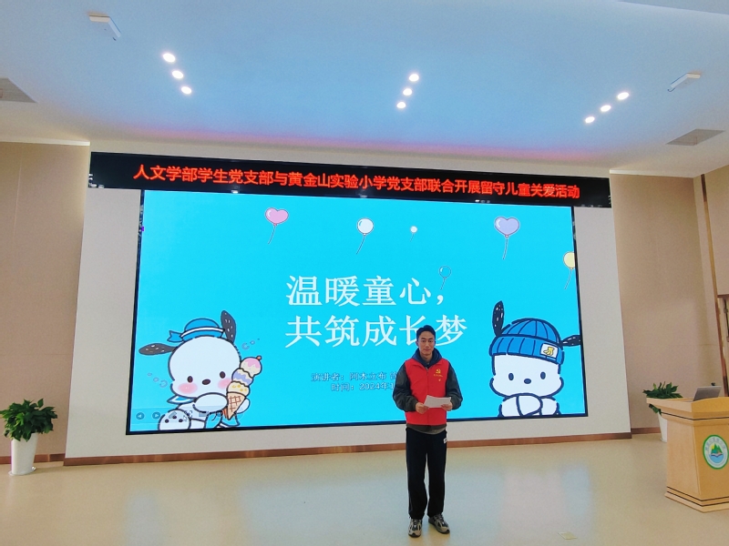 2024年12月17日下午,人文学部学生党支部联合黄金山实验小学开展了主题为“温暖童心,共筑成长梦”的留守儿童关爱活动。本次活动旨在为留守儿童提供心理支持和关怀,帮助他们树立积极的心理状态,促进身心健康成长。