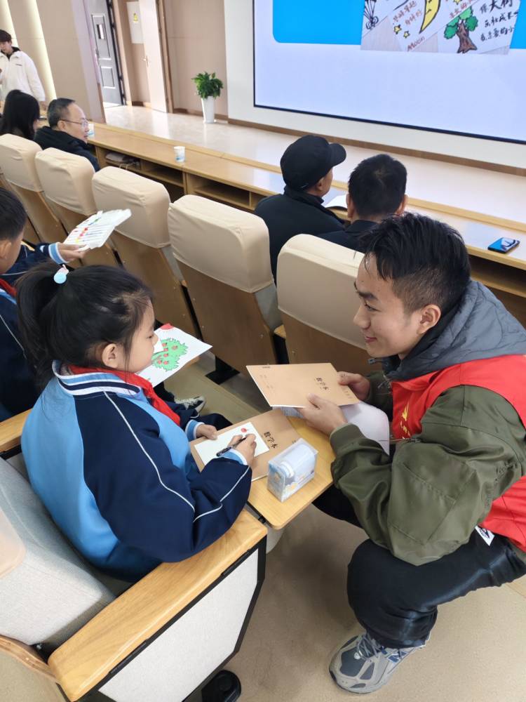 在“心声传递”活动环节,孩子们写下了自己对父母的思念与祝福,并通过小卡片传递内心的情感。“我希望爸爸妈妈可以平平安安,健健康康”,这些简单而真挚的字句透露出孩子们对家庭的深切牵挂和期盼。通过这一环节,孩子们不仅表达了情感,还在志愿者的鼓励下增强了与父母的沟通和联系。