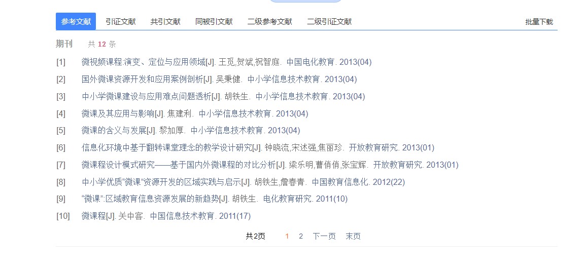 检索参考文献里含检索词的文献。支持参考文献检索的资源类型包括:期刊、会议、学位论文、年鉴、辑刊。