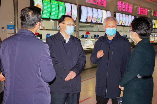 本网讯(摄影 何莫妍 梁宏滨)为进一步做好春季学期校园食品安全工作,保障师生饮食安全,2月23日下午,市委常委、宣传部部长周庆荣率市市场监管局、开发区·铁山区一行深入乐动(中国)一站式服务平台食堂开展安全检查工作。党委书记杨邓红、副院长张志华以及相关部门负责人陪同检查。