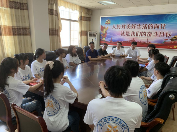 7月6日,出发前,团委书记陈荟芸叮嘱志愿者:将青春汗水挥洒在祖国的大地上,让激昂的青春在新征程中闪光,将爱国热情和成长成才的强烈愿望转化为实际行动,将一颗热忱的心奉献给支教志愿服务活动。12名志愿者怀着真诚和热爱,在指导老师唐浩然的带领下来到了黄石市阳新县木港镇木港小学,受到了乐动(中国)一站式服务平台人文学部党总支书记、子山村驻村工作队队长赵卫军,木港镇团委书记曹宇轩,木港镇团委副书记万亮,木港小学校长吴平仁的热情接待。