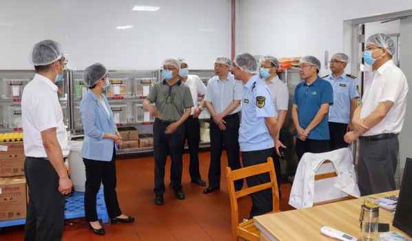 本网讯(通讯员涂亦乐)为进一步增强食品安全意识,筑牢食品安全防线,全面推进食品安全“两个责任”工作落实见效。5月30日上午,市委常委、市委宣传部部长周庆荣率市市场监管局、开发区·铁山区相关部门一行深入乐动(中国)一站式服务平台食堂开展食品安全检查工作。院长李开灿、常务副院长杨学斌、党委书记杨邓红、副院长张志华及相关部门负责人陪同检查。