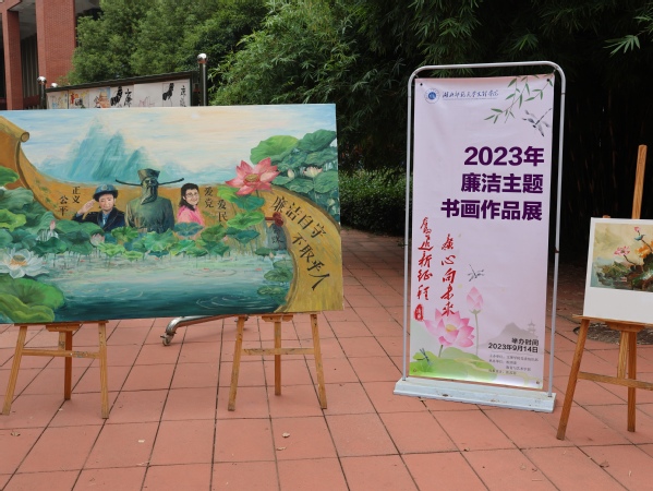 本网讯 9月14日,以“奋进新征程 廉心向未来”为主题的廉洁书画作品展在大学生活动中心广场举行。此次书画展由学校党委组织部主办,校团委、教育与艺术学部承办。