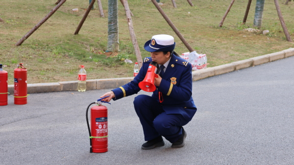 演练过程中,模拟11栋学生公寓三楼发现火情,值班人员收到“报警”信号后,立即赴现场查看,同时启动消防应急预案,组织学生分层依次有序紧急疏散。在各楼层引导员指引下,同学们用湿巾捂住口鼻,低姿快速地通过浓烟区,靠右弯腰撤离,迅速转移到安全区域。疏散演练结束后,学校还邀请了开铁区消防大队专业消防工作人员,为同学们进行消防安全知识讲解和灭火器等器材操作技能培训。