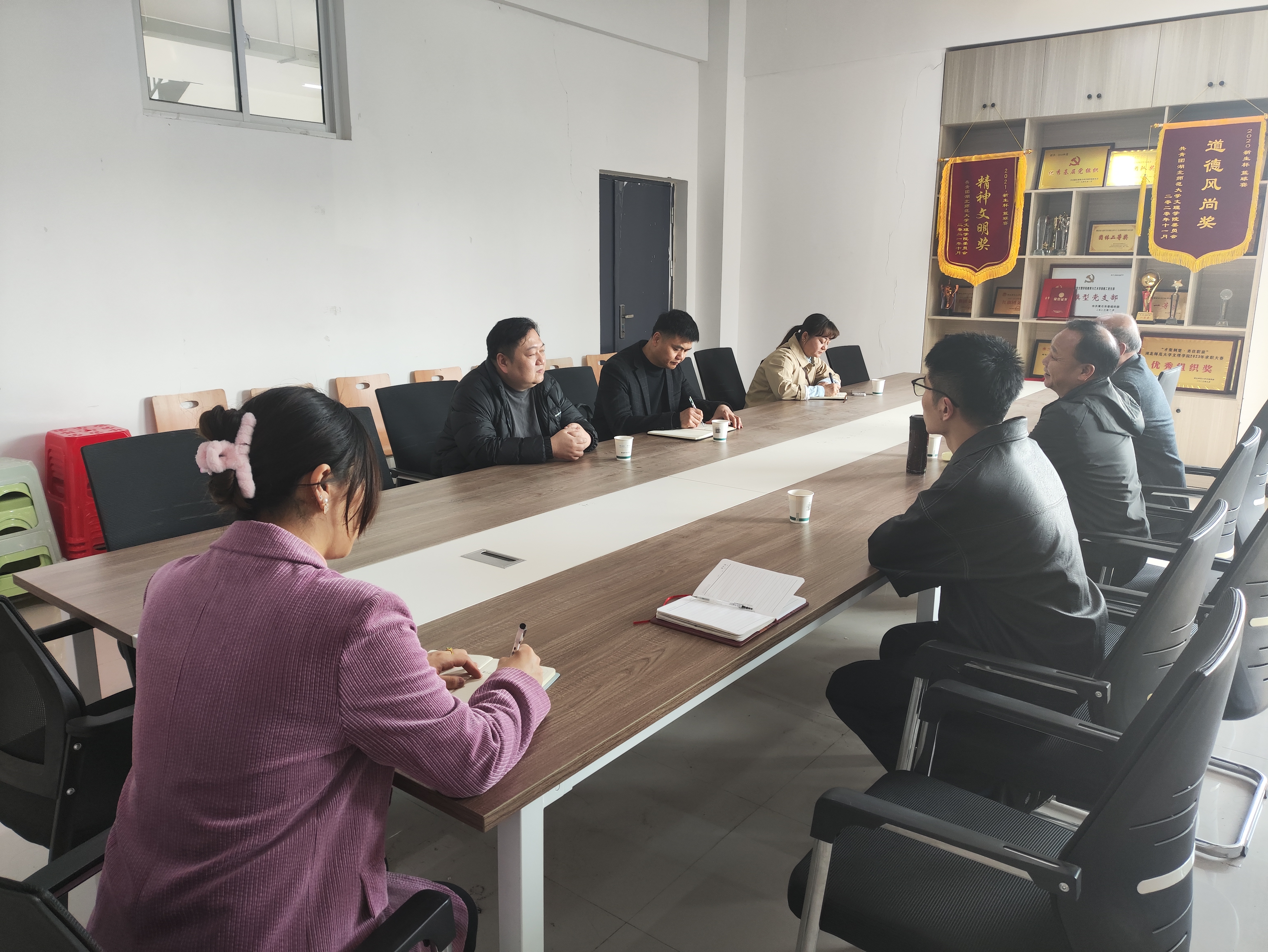 3月22日上午,湖北师范大学美术学院院长卫鹏、副院长刘宏晖及教学秘书石磊老师莅临我学部交流指导,由学部主任王文、书记李先华、主任助理胡蕾老师、美术专业负责人徐俊超及教学办张卓老师接待其参观了学生活动中心和实验楼的相关美术专业画室、书法实训室、计算机设计实训室等,之后在我学部会议室进行了深入交流。
