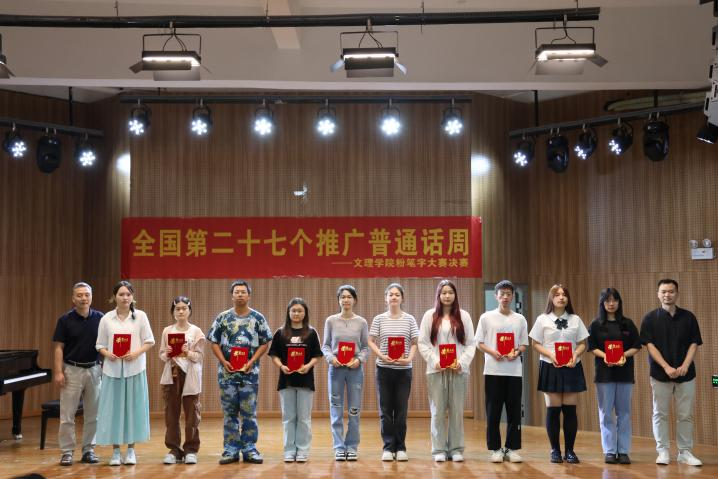 活动现场气氛热烈,师生们积极参与。学生们一笔一划、工整美观地在黑板上书写着汉字,力求将每个字都写得规范、端正,展现出扎实的基本功,选手们依次上台介绍自己作品的内容以及内心感悟,经评委打分以下学生获奖,具体名单如下: