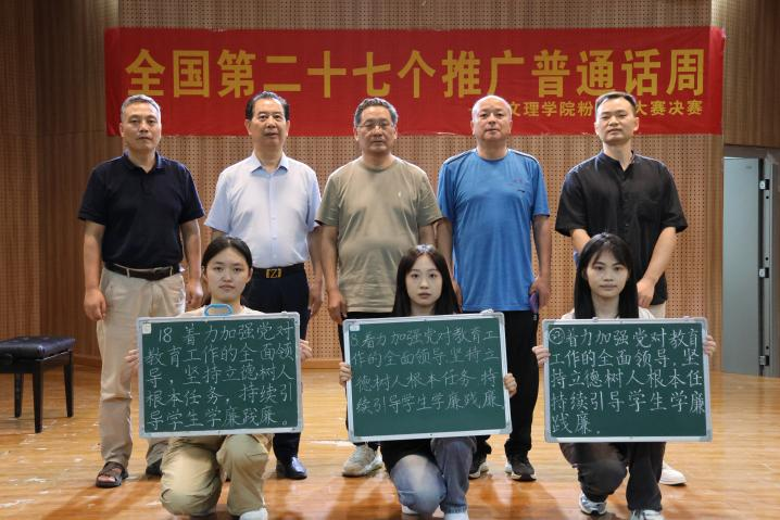 正值全国第27个推广普通话周,2024年9月23日乐动平台语委办主办、教育与艺术学部承办的“执笔扬正气,携手倡廉洁”粉笔字书写比赛决赛。比赛邀请了教务部部长潘继斌,人文学部党总支书记周景斌,教艺学部党总支书记李先华,理工学部党总支副书记肖圣芳,教艺学部书法专任指导李松老师担当评委。
